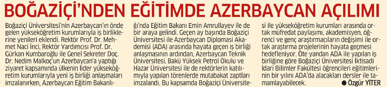 Boğaziçi'nden eğitimde Azerbaycan açılımı