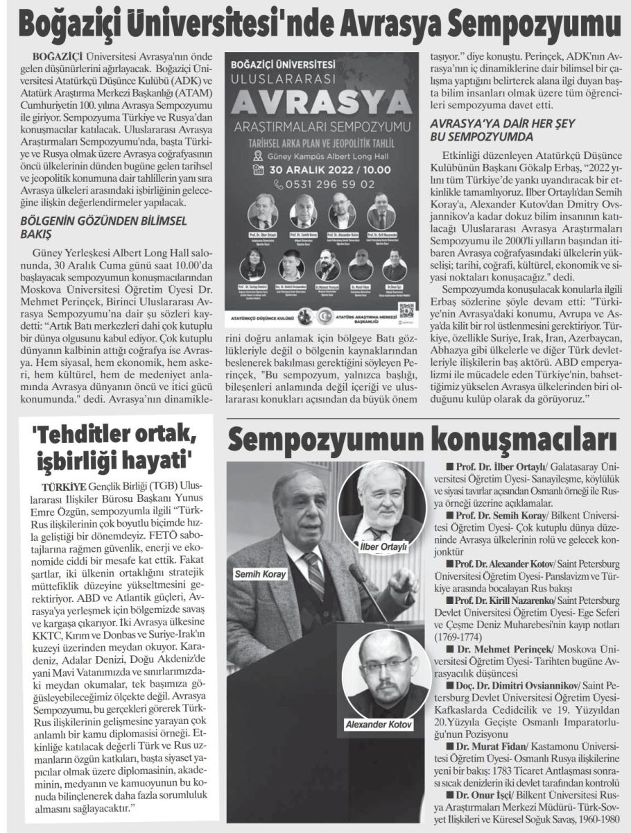 Boğaziçi Üniversitesi'nde Avrasya Sempozyumu