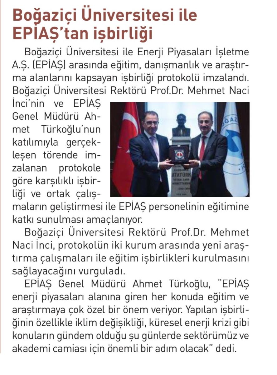 Boğaziçi Üniversitesi ile EPİAŞ'tan işbirliği