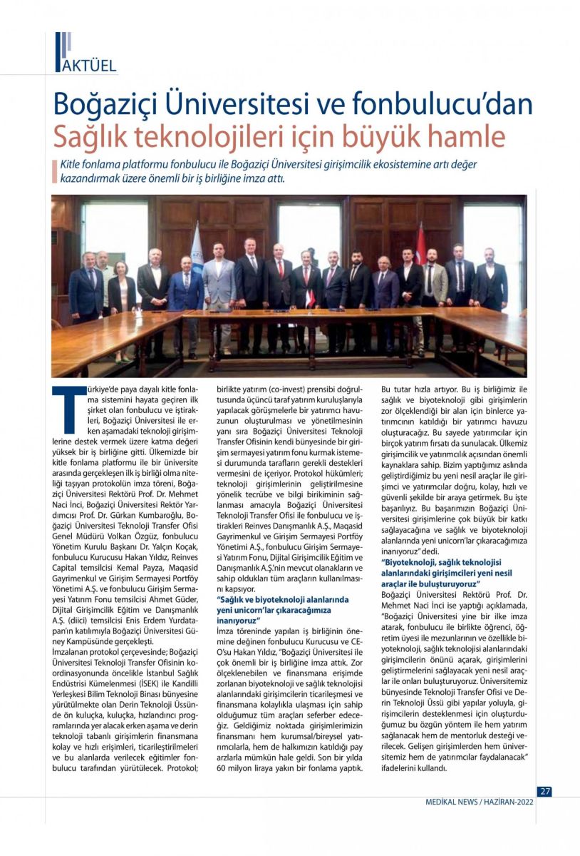Boğaziçi Üniversitesi ve Fon Bulucu'dan sağlık teknolojileri için büyük hamle