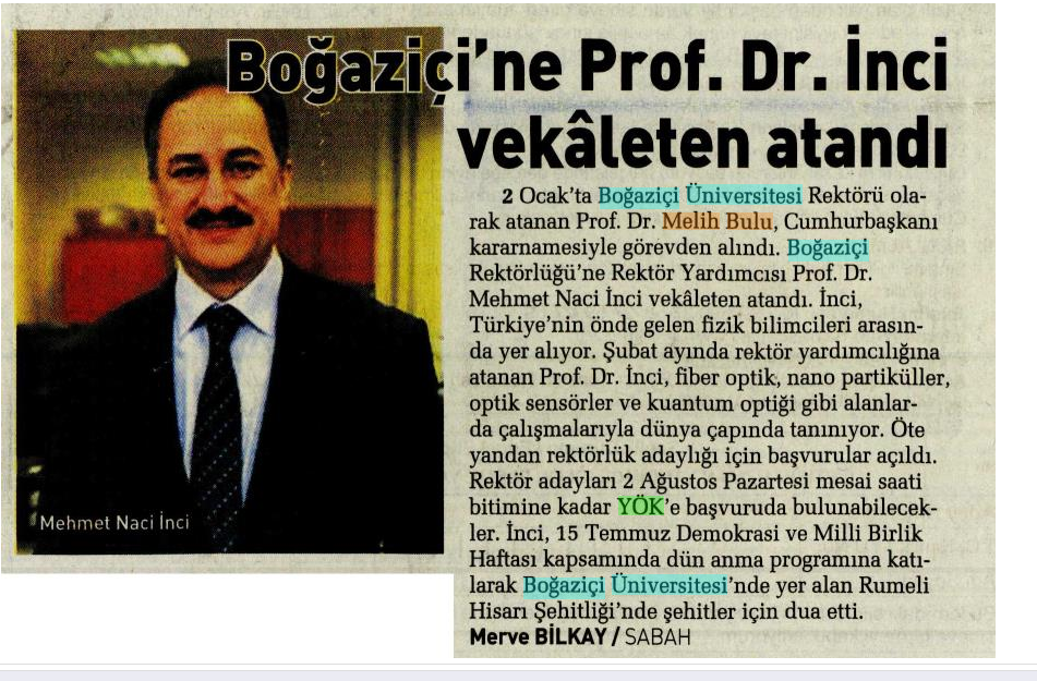 Boğaziçi'ne Prof. Dr. İnci vekaleten atandı